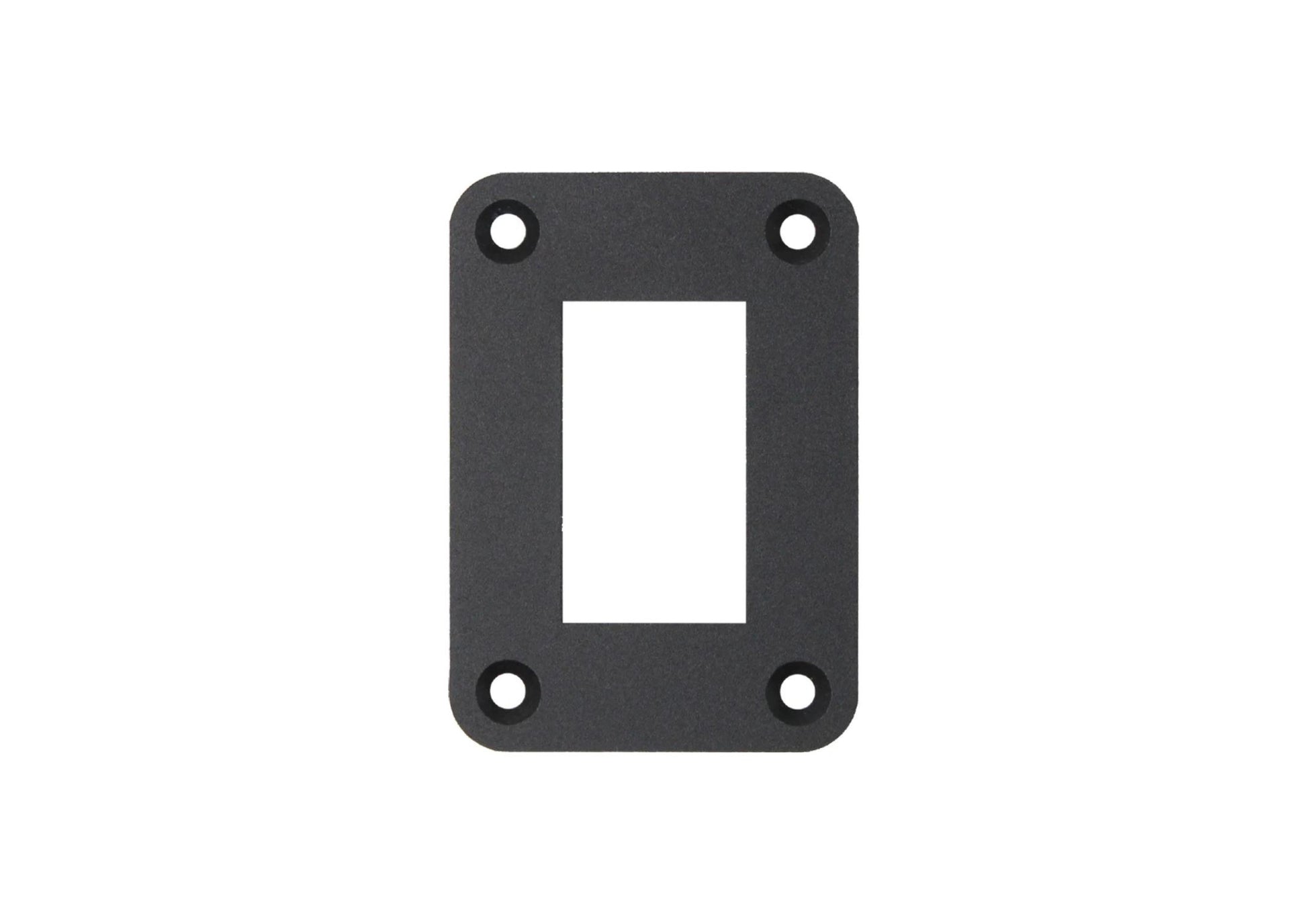 Black aluminium 1 gang panel/housing suitable for mounting a Rocker Switch.