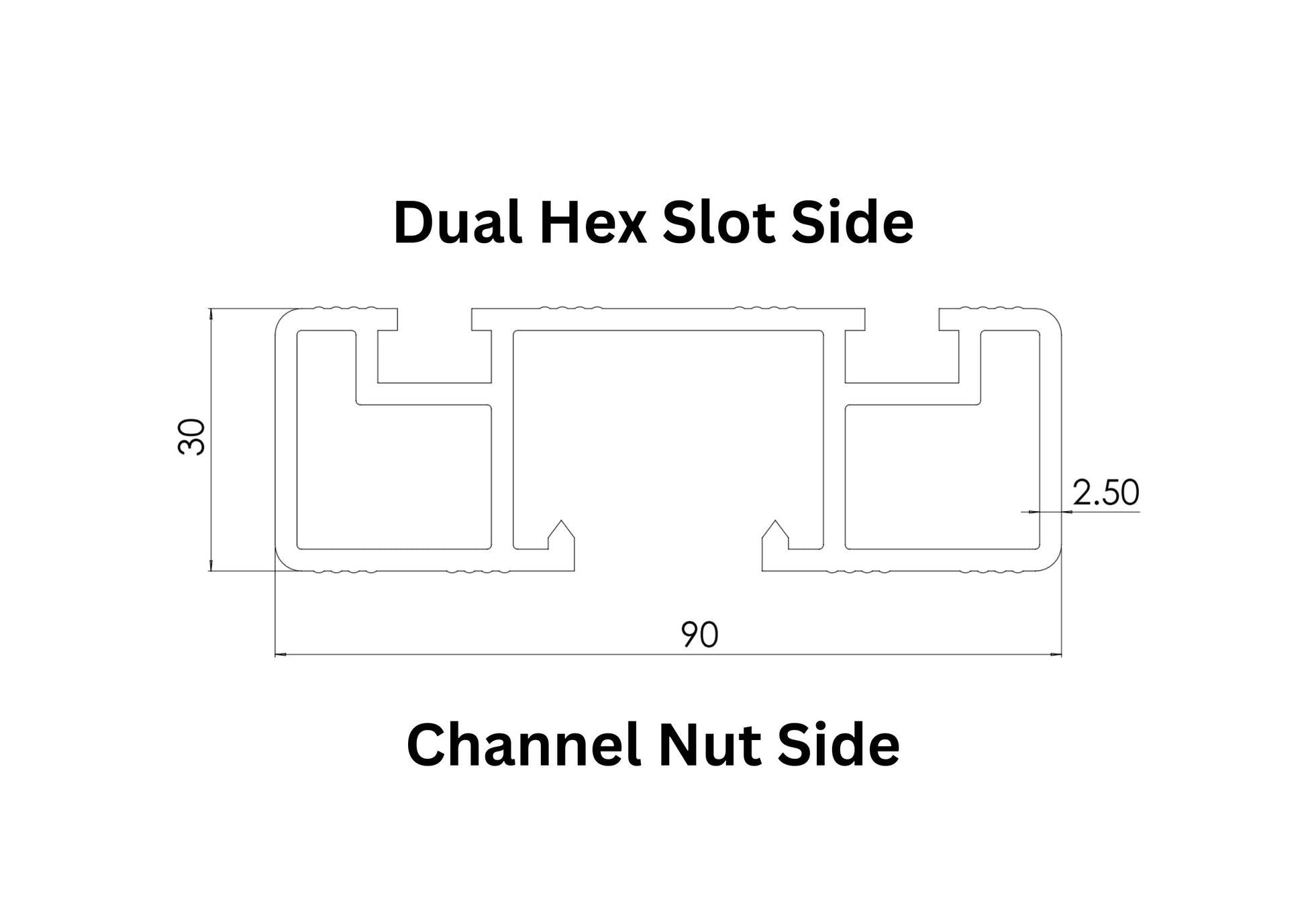 Each bar has two usable sides, a channel nut side and a dual hex slot side.